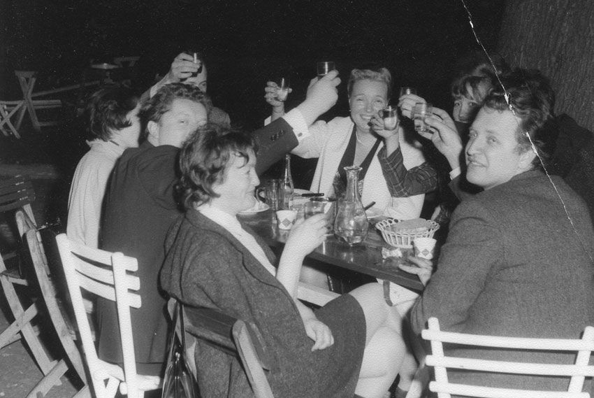 Das "Petit Festival Georges Méliès" wurde am 22. Mai 1964 in der Galerie nächst St. Stephan in der Grünangergasse 1, 1010 Wien, eröffnet. Die dortige Ausstellung begleitete die erst im Juni einsetzenden Filmprogramme. Die Eröffnungsrede hielt Albert Paris Gütersloh, und auch Georges Méliès’ Enkelin Madeleine Malthête-Méliès war anwesend. Hier beim Heurigenbesuch.