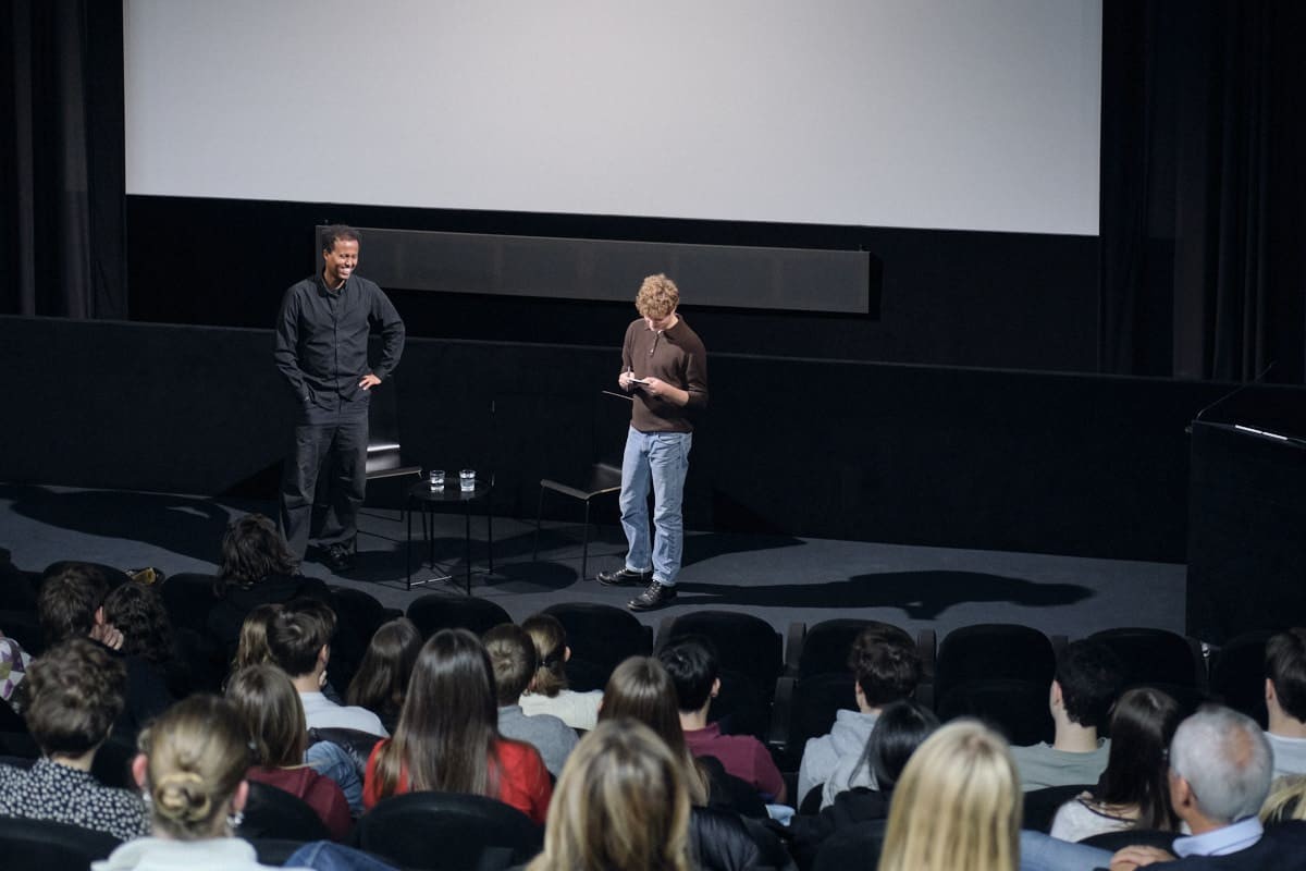 In Kooperation mit CINEMA NEXT – Junges Kino aus Österreich war Filmemacher Mo Harawe am 4. November 2024 bei Schule im Kino zu Gast. Mit ausgewählten Kurzfilmen sowie Materialien zu seinem Langfilmdebüt The Village Next to Paradise zeichnete er seinen kreativen Schaffensprozess und seinen Weg zum ersten Kinofilm nach und beantwortete auch die Fragen der Schüler*innen.