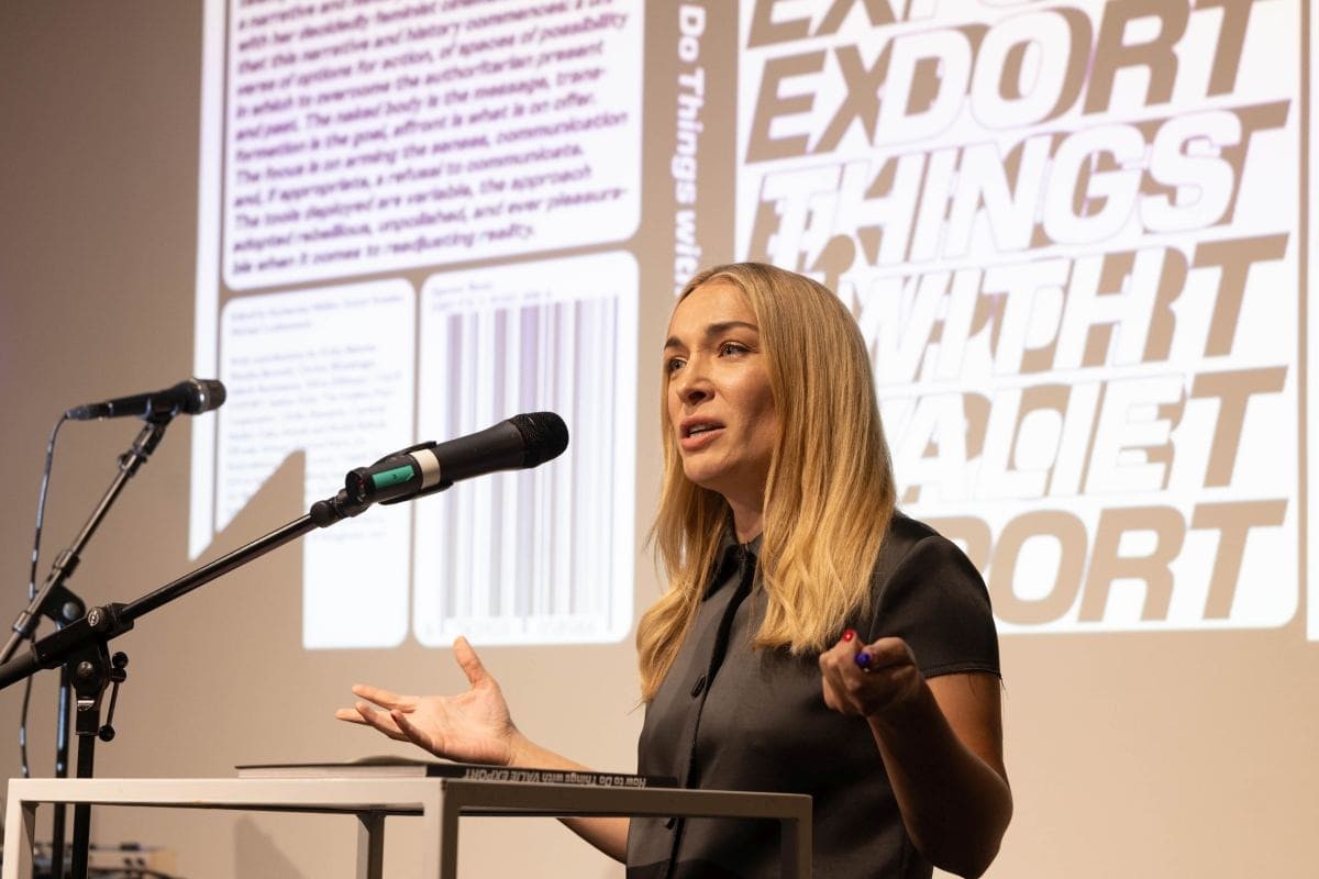 Zum 85. Geburtstag von VALIE EXPORT schenkten ihr das Belvedere 21, sixpackfilm und das Österreichisches Filmmuseum ein fulminantes Fest mit zahlreichen künstlerischen Beiträgen aus Film, Performance und Musik. Gemeinsam mit den internationalen Künstler*innen Barbis Ruder, Denise Palmieri, Karin Fisslthaler aka Cherry Sunkist, Sophia Süßmilch und FARCE feierten wir VALIE EXPORT, ihre Kunst und die ihr folgenden Künstler*innen-Generationen, die sie bis heute prägt. Im Rahmen der Feier wurde auch das neu erschienene Buch How to Do Things with VALIE EXPORT (Spector Books in Kooperation mit dem Filmmuseum) von Michael Loebenstein und Katharina Müller vorgestellt, aus dem anschließend Inna Shevchenko ihren Beitrag las.