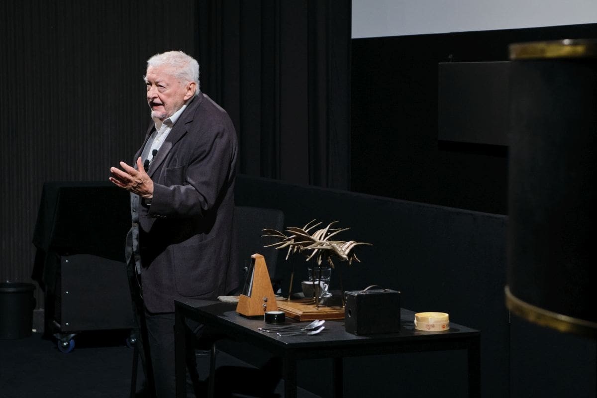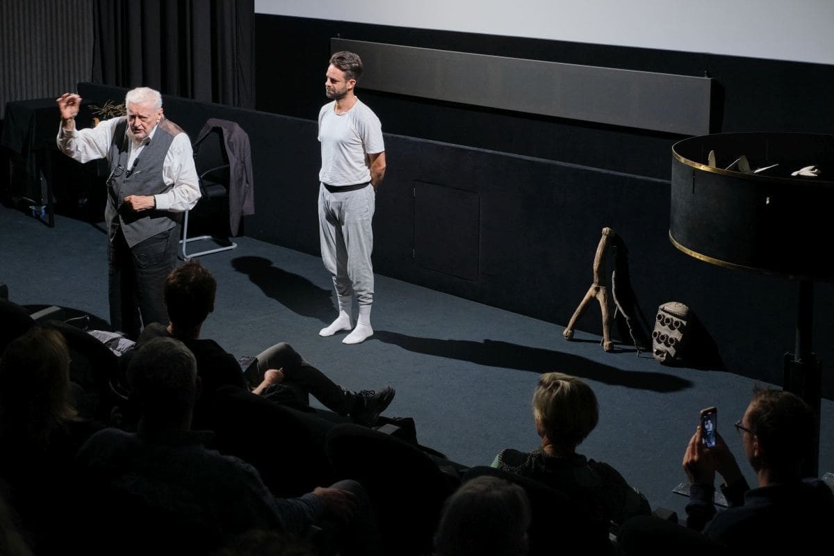 Seit vielen Jahren eröffnet Peter Kubelka im Filmmuseum das von ihm konzipierte Zyklische Programm Was ist Film mit einer Einführung. Darin vermittelt er dem Publikum seine grundlegenden Überlegungen zu Film als Kunstgattung: Was ist Bewegung? Was ist Ruhe? Was ist Film? Anhand ausgewählter Objekte aus seiner privaten Sammlung – diesmal sogar durch die Mitwirkung eines Tänzers – macht er zentrale Aspekte anschaulich: den Wechsel von Licht und Dunkelheit, die Abfolge einzelner Bilder und die Art, wie im Auge und im Geist des Publikums daraus Bewegung und Bedeutung entstehen. Zugleich verdeutlicht er, dass alle Kunst auf der Nachahmung der Natur beruht und sich die menschliche Kreativität aus diesem Prinzip ableitet.