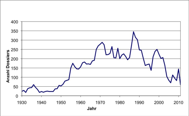 The dossiers contain a variety of documents: An individual dossier might contain an article, a newspaper clipping or a promotional item, as well as an entire series of articles along with advertising and press materials, screening invitations, etc. Approximately 82% of the dossiers represent individual film titles, 15% are devoted to persons, while 1.5% represent film festivals and another 1.5% are devoted to corporations, events, and documents related to technical advancements. The distribution of the film dossiers are pictured on the accompanying graph.
